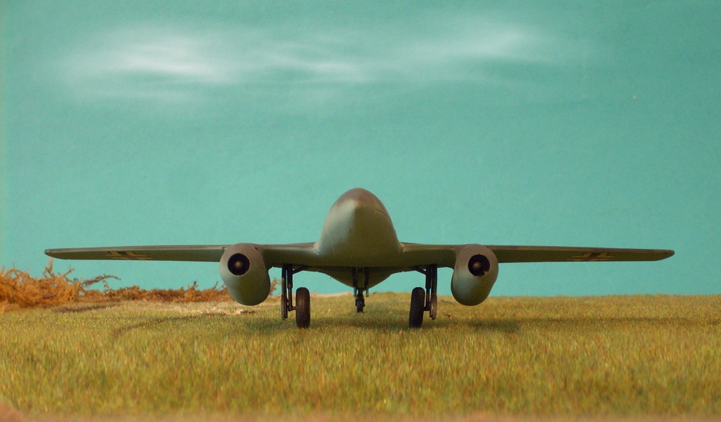 On a whim I built the Matchbox kit of a Me 262 into a V3 by closing the cannons openings and also the front-wheel-bay and building a new back-wheel out of the spare-box. The cockpit is scratchbuilt (because Matchbox never delivers correct interior in 1/72), but just what's necessary. The selfmade canopy got slightly other frames. The (in the measures not strictly) correct code is made of self-adhesive letters. And it's even flying. |